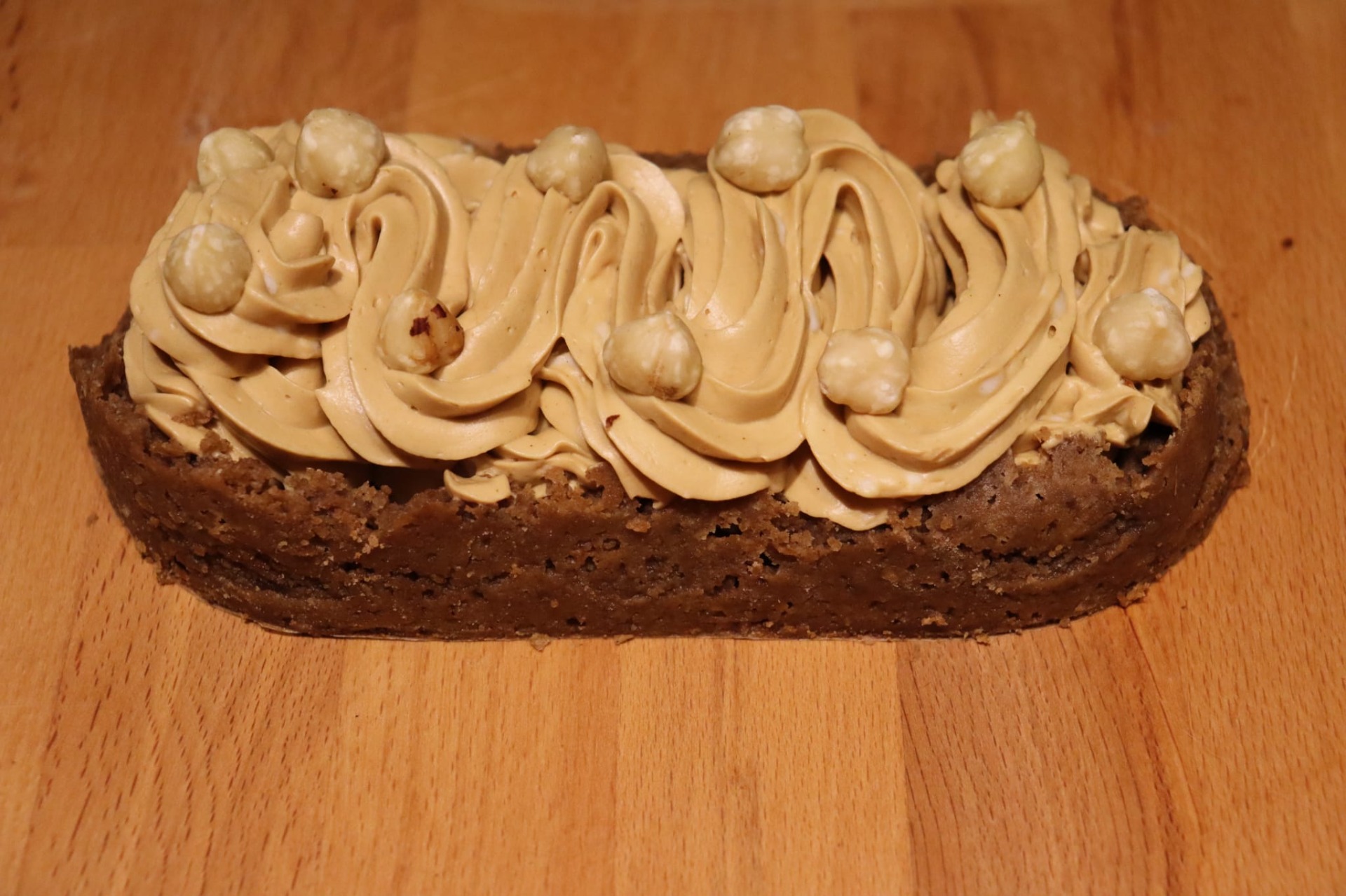 Lekker hazelnootslof. Met een topping van hazelnootcrème en hazelnoten. Geheel glutenvrij. Geschikt voor 6-8 personen.